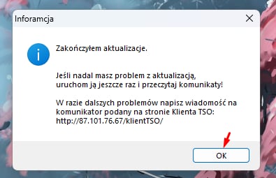 Po instalacji klienta ponownie trzeba go uaktualnić aktualiztorem.
